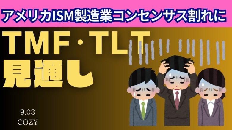 9.03アメリカ債券(米国債券)ETFの買い時TMF・TLT|暴落の値動き!ISM製造業はコンセンサス割れ