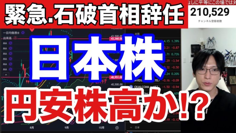 石破首相辞任で円安株高か⁉日経平均、日本株爆上げ来る?ドル円147円から急騰か?雇用統計最悪で米国株、半導体株上昇