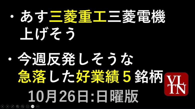 今週反発しそうな急落した好業績5銘柄。あす三菱重工と三菱電機が上げそう。10/26日曜版~あす上がる株。最新の日本株情報。高配当株の株価やデイトレ情報も~
