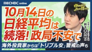 未分類 【10月14日(火)東京株式市場】日経平均株価は大幅続落/政治の不透明感広がる/海外投資家からはトリプル安警戒の声も/高市トレードならぬ玉木トレード?/良品計画、決算発表で逆行高/SBGは6%近く下落
