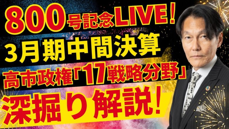 ■タイトル 「800号記念LIVE!3月期中間決算 高市政権「17戦略分野」深掘り解説!」
