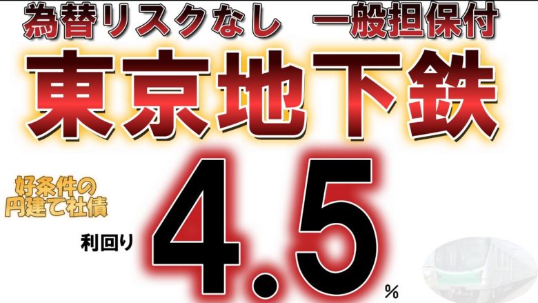 【債券投資】為替リスクなし!利回り4.5%。一般担保付・東京地下鉄社債を発見。好条件の円建て社債