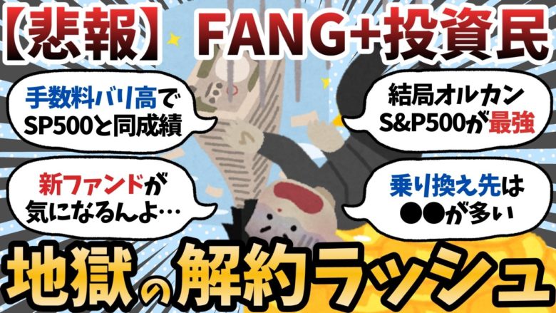 FANG+の最近の成績を受けて、撤退を検討しているスレ民。ファンド特有の欠点や他の銘柄の強さに触れつつ、今後の戦略を語っています。