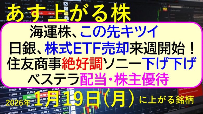 海運株、この先キツイ。日銀が株式ETF売却、来週開始。住友商事絶好調。ソニー下げ下げ。ベステラ配当・株主優待