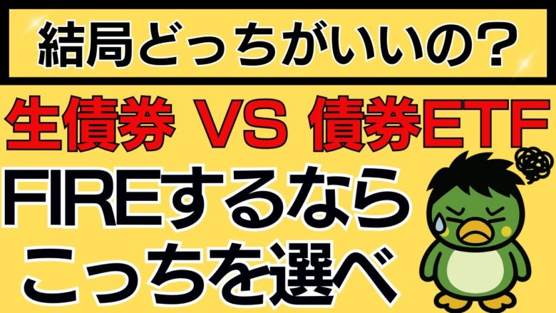 この動画では、2026年時点でFIREを目指す人におすすめなのは、生債券か債券ETFかを、両者を比較して解説しています。