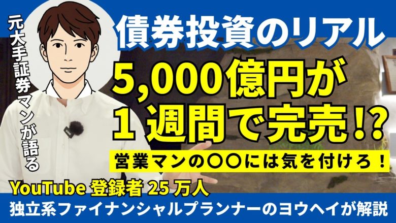 今回は、元証券マンで現在は独立系FPとして活動するヨウヘイさんをゲストに迎え、証券会社時代に意識していた販売術や債券投資の考え方の「リアル」を徹底的に深掘りします。