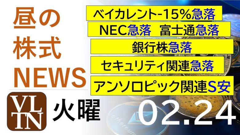 ベイカレント-15%急落。NEC急落。富士通急落。銀行株急落。セキュリティ関連急落。アンソロピック関連S安発生!2026年2月24日(火)~明日上がる株最新の日本株情報。高配当株の株価やデイトレ情報~