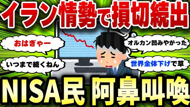 この動画では2026年3月時点でのイラン情勢による投資家たちの反応を紹介しています。パニックによる損切りをする人もいれば買い場と捉える人も・・