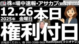 未分類 【朝株!(投資情報)】本日が「朝株!」最終配信です。1年間のご視聴ありがとうございました。大晦日(12/31)には「年越しライブ」を配信します。来年は1/5から動画再開。年末年始は「短信」も配信予定。